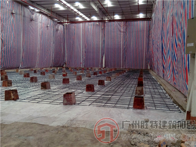 维他奶(佛山)有限公司厂房地坪加固工程-厂房基础加固工程。主厂房主体结构为单层多跨门式钢架,基础采用预应力砼管桩、旋挖桩及独立基础等多种形式。由于地层中含有淤泥质土层且未进行有效处理,导致4-8轴线内的地面出现明显的沉陷与开裂,多表现在仓储和通道区域,由于厂房内部该部分区域用作仓库和车辆通道,使用荷载较重,也是导致地面下沉和开裂的一个原因,由于严重影响到主厂房的正常使用,现根据业主要求对原地面结构进行加固处理。
