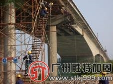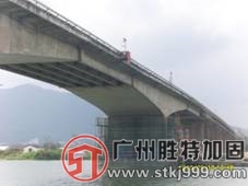 广州胜特加固公司桥梁加固工程案例之新会区省道S270虎坑大桥维修加固工程。该桥已运营17年,需进行老旧桥梁改造,2007年10月至2008年11月对进行多次的桥梁检测鉴定,检测结论定性为四类桥梁,主桥和引桥都出现了不同程度的病害,我方采用桥面粘贴碳纤维加固、桥梁更换伸缩缝、引桥加固、粘贴钢板、预应力钢绞线施工、环氧砂浆修补、粘贴玻璃纤维布、裂缝灌浆修补等加固方法进行桥梁加固处理,该工程列为江门市的重点工程。